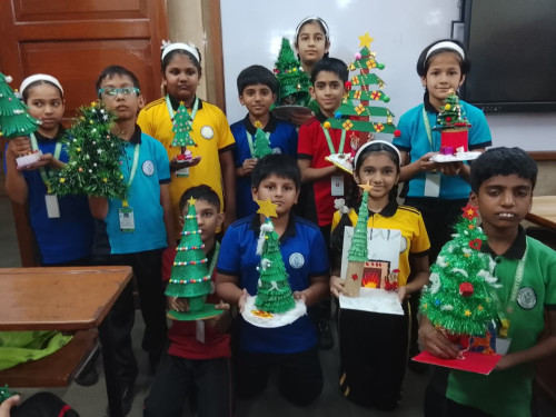 Mount Carmel School organized a Christmas Decoration Competition to celebrate the festive spirit and encourage creativity among students. The competition was conducted class-wise during the first two lectures of the school day. Different decoration activities were assigned to each standard to ensure age-appropriate participation. Standard I students made Santa hats, Standard II students prepared Christmas socks, Standard III students created Christmas wreaths, and Standard IV students decorated Christmas trees. Prior instructions were clearly given to all students. They were informed that no ready-made items were to be brought from home, and all decorations had to be prepared during the competition period itself. This helped promote originality and hands-on creativity. The decorations were judged based on neatness and creativity. Students participated enthusiastically and displayed great imagination and effort in their work. The judges’ decision was final, and three winners were selected from each class. After the competition, all the selected decorations were beautifully displayed and used for classroom decoration, adding a joyful and festive atmosphere to the school environment. The competition was a great success and helped students develop creativity, fine motor skills, and an appreciation for teamwork and festive traditions.