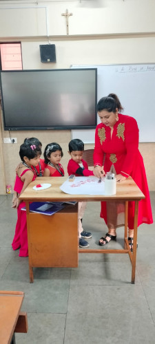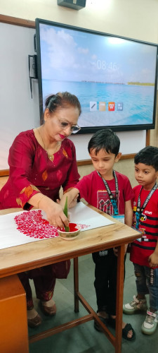 Red Day Celebration was organized on 23rd January 2026 (Friday) at Mount Carmel School during regular school hours. The event was conducted with the objective of introducing young learners to the colour red through fun-filled and engaging activities. Prior to the celebration, children were informed to come dressed in red-coloured attire. The classrooms were beautifully decorated with red-themed decorations, creating a vibrant and cheerful atmosphere. The children were warmly welcomed by the teachers, who were also elegantly dressed in red, adding to the spirit of the occasion. Various age-appropriate activities were conducted by the teachers to ensure active participation of all students. Nursery students enjoyed finger dabbing in balloons, Junior KG students created flower bouquets using forks, and Senior KG students participated in ladyfinger dabbing on capsicum. These activities helped enhance their creativity and fine motor skills while reinforcing colour recognition. In addition, the teachers had thoughtfully prepared an attractive selfie stand, and the stage was decorated with different pictures representing the colour red. Fun games were also organized, making the celebration lively and enjoyable. The Red Day celebration successfully helped children learn about the colour red in a fun, interactive, and experiential manner. The day was filled with joy, excitement, and enthusiasm, making it a memorable experience for all our little stars.