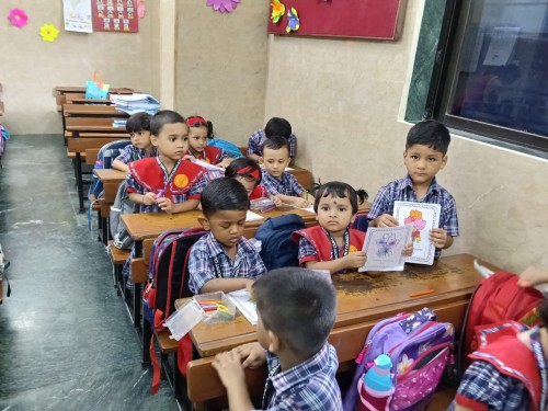 To celebrate the special bond between parents and children, a Parents Day Card-Making Competition was organized for the Pre-Primary section at Mount Carmel School during school hours. Students were instructed to bring materials such as colours, stickers, and other decorative items. Participation was compulsory for all children. A worksheet featuring a base image was provided by the school to guide the activity. The children participated with great enthusiasm, creatively using stickers, bindis, and their own drawings to design heartfelt cards for their parents. Their imagination and effort were clearly reflected in each card. Teachers appreciated all the children for their unique ideas and enthusiastic participation. The best three cards from each class across all three sections were selected and awarded certificates by our Principal, Fr. Pawan Saldanha. The activity created a warm and joyful atmosphere, and the joy and excitement on the kids faces were truly heartwarming. Each child proudly carried their handmade card home as a surprise for their parents.