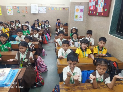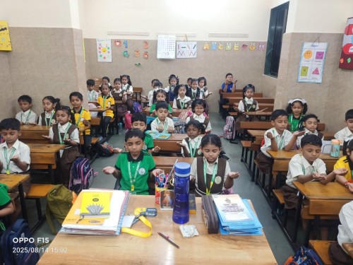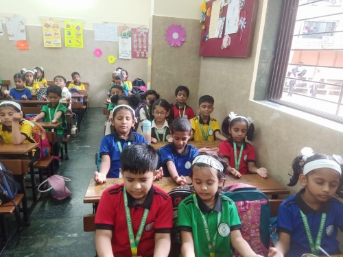 On occasion of Sant Dnyaneshwars 750th birth year, the Primary section students had a meditation session to pay tribute and learn the benefits of meditation in their day-to-day life. The children were guided through simple breathing exercises, mindfulness techniques, and visualization activities suitable for their age group. The children were taught how to sit comfortably, close their eyes, and focus on their breathing to help calm their thoughts. The session helped improve concentration, reduced restlessness, and brought a sense of inner peace to the young minds. It was heartening to see children responding positively and expressing interest in practicing meditation regularly.