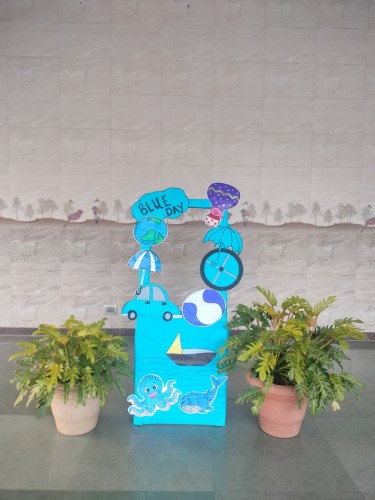The Blue Day Celebration was held on Wednesday, October 1st, 2025, at Mount Carmel School during school hours for all Pre-Primary section. Children were dressed in various shades of blue, reflecting the theme of the day. The school stage was beautifully decorated with blue-themed elements, and a creative selfie stand was set up by the pre-primary teachers to capture memorable moments of the celebration. Students enthusiastically participated in classroom activities guided by their teachers: Nursery: Teachers provided worksheets featuring a large tap, and children created water splashes using blue paint and a sponge. Junior KG: Children enjoyed finger painting to depict raindrops and water splashes, symbolizing rain. Senior KG: Students had fun dabbing blue watercolors to create clouds and dew drops. Teachers also explained the different shades of blue using pictures, charts, and real-life objects from the surroundings. The children looked adorable in their blue attire and actively participated in all the activities, learning color recognition in a joyful and engaging manner