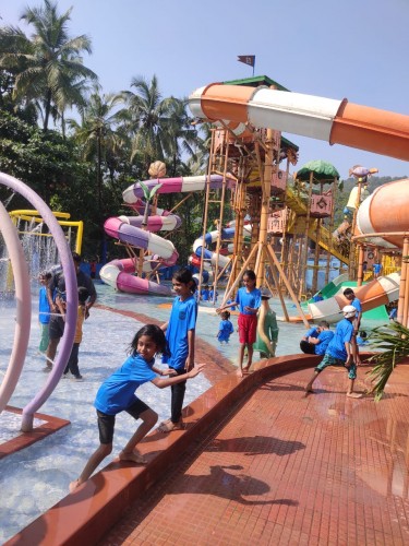 Our school picnic was organised for Children’s Day at Tikuji-ni-Wadi, Thane. A few buses were organised for picnic. Finally, the time came to leave. On the way, it was fun watching the mountains pass by—covered with beautiful green trees that carry hope and faith within them to stand strong despite the air and noise pollution on Ghodbunder Road. Soon, we finally reached our destination. After checking in, the fun truly began. We had our breakfast and headed out to see the beauty of Tikuji-ni-Wadi. The pools, the slides, and the rain dance were all the fun we all needed. Soon it was lunchtime. And after that, the real adventure began at the amusement park. Our first ride was the Toy Train—where all sat and Enjoyed a lot. Our second adventure was the Elephant Ride—those tiny elephant seats taking us gently up and down in the air were surprisingly so much fun. Our third was the Spinning Coaster—, that coaster was dangerous but enjoyable too! We tied our seatbelts and it began. The way all screamed… Students will never forget those precious moments. Up, down, zigzag—but all fun. Our fourth adventure was the Dashing Cars—all students were scared at the start, but soon it became exciting. Our fifth and last ride was the Cup and saucer ride all students were enjoying like anything. After that, it was time to relax, and soon we began our journey back to school with heavy hearts and pockets full of memories—memories that we will cherish later. Hereby in conclusion, one can say that it was fun and enjoyment at TIKUJI-NI-WADI on Children’s Day.