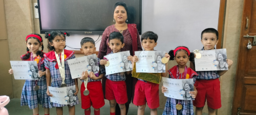 The Rangotsav Celebration, a National-Level Art Competition, was organized for the Pre-Primary section at Mount Carmel School. The competition was open to all children, and a large number of students participated with great enthusiasm, showcasing their creativity and artistic talents. Mount Carmel School achieved outstanding success at the national level in various categories, including Colouring, Handwriting, Collage Making, and Finger and Thumb Painting. Among the participants, 24 children won gold medals, 16 secured silver medals, and 11 received bronze medals. The first prize winner was awarded a triangular cycle and a trophy, adding to the excitement of the event. The organizing committee appreciated and congratulated the school, students, and teachers for their hard work and dedication. Furthermore, several winners were selected to participate in the International Art Competition, bringing pride and recognition to the school.
